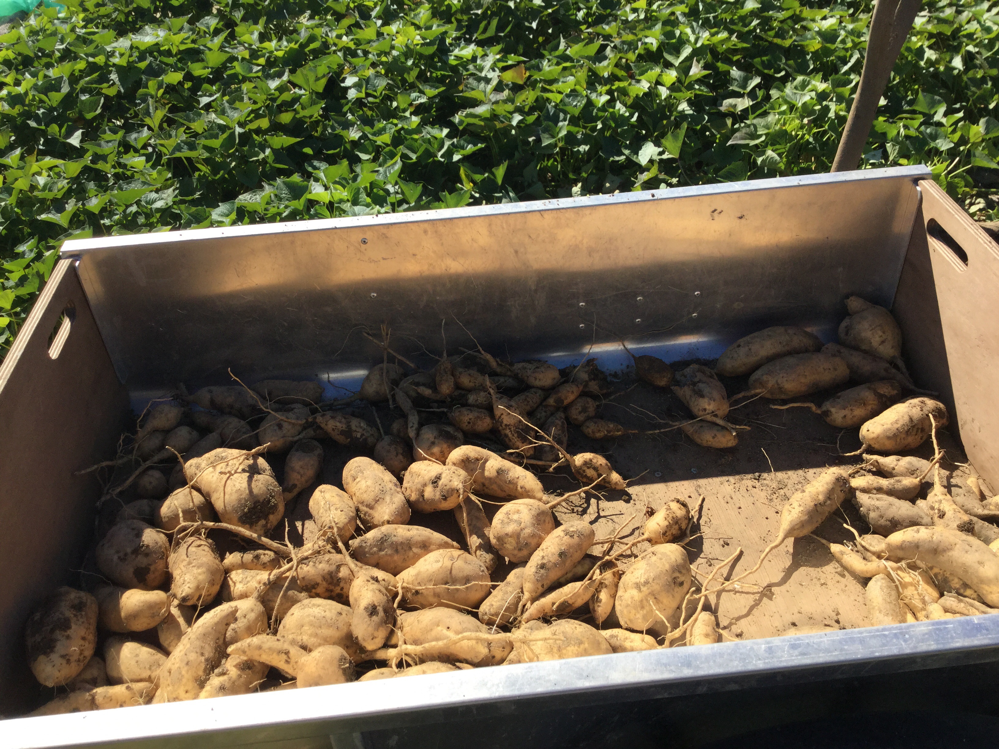 I start the kumaras in pots in August or September, plant in the ground in November and harvest toward the end of April. So they need 4-5,months of warm weather and can’t go in until after the tomatoes.
