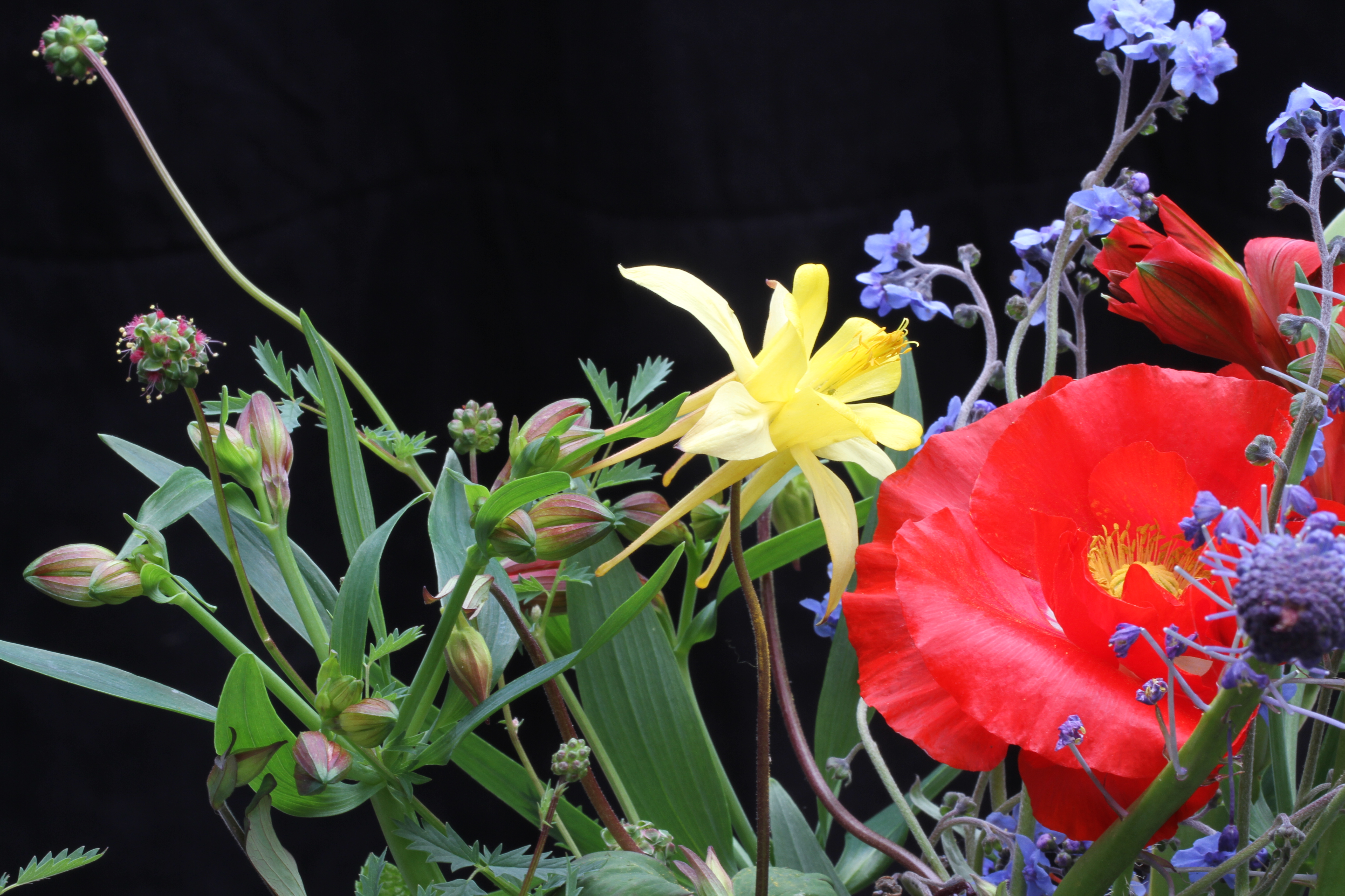 3. Per usual, love your arrangement! I’m not sure what it is that makes your arrangements so unique, perhaps its the abundance or choice of flowers, perhaps both! Love the red strawberries playing off the poppy. The anchusa and the columbines are lovely, too. I just flashed on the art of Marjolein Bastin, do you know her? Maybe that’s why I find your work so appealing. 🙂