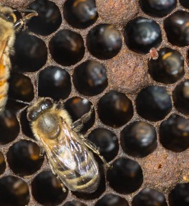 varroa mite on brood cell